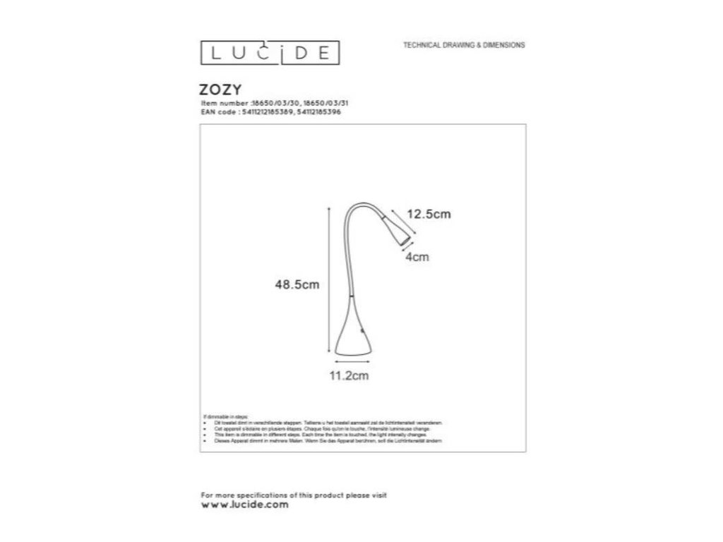 De Zozy collectie bestaat uit een reeks lampen met flexibele nek (tafellamp, wandlamp, spotklem, vloerlamp) allemaal te verkrijgen in een strak zwart kleur, alsook 1 variant in het wit. De Zozy artikelen zijn gemaakt uit plastic en zijn zo heel flexibel en makkelijk in gebruik. Met een ingebouwde dimmer kan je deze lampen makkelijk switchen tussen 3 verschillende lichtsterktes. Ook zit hier een LED lichtbron is van 3W die zorgt voor een warm wit licht in uw salon, eetkamer, keuken, bureau, hal, slaapkamer...